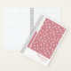 This notebook features a dusty pink background with a right-weighted floral panel scattered with small white blossoms. A narrow vertical swatch panel on the left adds subtle structure and contrast, giving the design a clean, modern balance. The white footer grounds the layout and keeps the overall look soft, calm, and thoughtfully composed.
