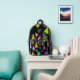 You will love carrying this All-Over Print Backpack, with the different sizes and colours of triangles, created with rough brushstrokes, on a black background. Stylish and fun!