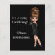 Fun diva birthday party save the date postcards. Add your details in the font style and colour and wording of your choice. You can also change the background colour on this diva birthday party postcard.