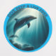A dolphin underwater with rays of sunlight filtering through the water. The words 'Dive deep, live free' are written above the image. A wonderful sticker with an inspiring message. Contains generative content.
