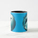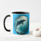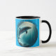 A dolphin underwater with rays of sunlight filtering through the water. The words 'Dive deep, live free' are written above the image. A wonderful mug with an inspiring message. Contains generative content.