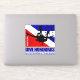 The stick looks amazing. Unfortunately, it would not stick on our suitcase as it was textured. When we found a non-textured (smooth) suitcase, the sticker stuck and looks great. The printing looked awesome.