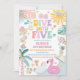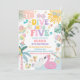 Make a splash with this colourful "Dive Into Five- birthday party invitation, perfect for a summer pool celebration. Featuring playful illustrations of ice cream, popsicles, flamingo floats, palm trees, and beach balls, this cheerful design sets the tone for a fun-filled day. Ideal for childrens pool parties, tropical birthdays, or summer gatherings, this invitation is both vibrant and engaging. Customise with your party details to create a memorable keepsake that guests will love.