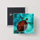 A cool beach coastal ocean design square button badge. The design is made from a photograph of a sea turtle Honu swimming in the ocean with the word DIVE in a decorative typography text font.