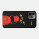 Striking illustration of a scuba diver in bright orange gear surrounded by golden fish against a deep black background. This bold and artistic iPhone case captures the wonder of underwater exploration, perfect for ocean lovers and diving enthusiasts.