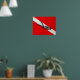 S.C.U.B.A Flag, or Diver Down Flag, is a red and white signal flag flown on a boat to indicate that there are divers in the water and for other boaters to stay clear. This has a diver in full scuba gear diving down.