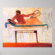 Fourth in a series of eight works from the Tomb of the Diver. This tomb was created in about 480 Before the Common Era and was discovered in 1968. Troy Caperton has restored eight images taken fromthe tomb and presents them here for your consideration. Any lover of Classical Greece or of the lifestyle of the Ancients will find this series fascinating. In this fourth panel, a man reclines on a kline, a low sofa, turning to the couple next to him. He has lowered his lyre as the song has ended. He appears to be holding an egg in his right hand. This would be perfectly appropriate for the tomb scene in that the egg is a Pythagorean symbol of re-birth.