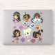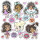 A cute bunch of girls of all cultural backgrounds: African American, Asian, Native American, Hispanic, White and Indian girls posing together with hearts and encouraging words surrounding them.