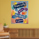 This poster with the text “Diversity Makes the Magic Happen” is one of our social justice designs. The design is in yellow, orange, purple and blue. The letters are white.