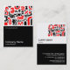 A business card design half black and half white with a modern abstract motif. Main company details on the front with name and contact details on the back with a similar theme.