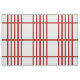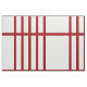 Stylish fabric features a bold geometric pattern with groups of five vertical red stripes divided by horizontal red lines. The red on white design has a classic look and is an original creation.