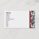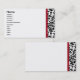 Striking elegant business card with sharp black and white damask print bordered by deep red front and back.
