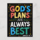 A beautiful quote stating Gods plans are always best written in elegant calligraphy on a background of soft pastel colours and delicate floral motifs.