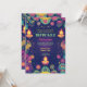 The front of the invitation features a rich purple background, creating a luxurious backdrop for the design. At the bottom, three beautifully detailed Diya lamps in a traditional Hindu style illuminate the scene. The border is adorned with vibrant yellow, pink, and turquoise elements, creating a stunning contrast and festive flair. The front also includes elegant space for event details in a stylish script. On the back, the purple theme continues, providing a canvas for customisable text and Diwali wishes, framed by the same colourful elements for a cohesive and celebratory look. This design combines tradition with a touch of contemporary elegance, perfect for the Festival of Lights.