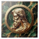 Divine Encounter Jesus Face in Ornate Gold Frame Ceramic Tile