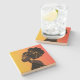 The coasters are gorgeous, a quality feel and heavy weight. They look like a precious archeological find. A rustic stone juxtaposed with a modern floral black and white print. I like the way the print goes slightly imperfect on the cut stone edges giving them a kind-of natural beauty.