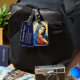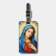 This beautiful and classic design features a portrait of the Virgin Mary with a serene expression and closed eyes, conveying a sense of deep reverence and peaceful meditation. She is dressed in a traditional blue veil and a red dress, with a radiant golden halo illuminating her head. The portrait is framed by an ornate, decorative border, giving it a timeless and spiritual quality. This design is versatile for a range of products with a religious or devotional theme. Imagine it on religious art prints, church goods, inspirational stationery, or spiritual home decor."
