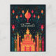The towers of the temple reach for the heavens, their outlines gracefully tapering towards the starlit night. Adorned with intricate patterns and delicate embellishments, they evoke a sense of majesty and devotion. The juxtaposition of the rich, warm colours against the dark, cool backdrop creates a striking visual contrast, amplifying the card's overall allure.