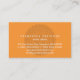 A business card that's sure to get attention. A doily-like ornament draws the viewer into the centre of this card with a clean type treatment suggesting a serene environment. A bright orange is used on the back with the ornament repeated in a slight transparency over it. This is the perfect card for a salon or spa, a massage therapist or wellness professional, or a retail shop focusing on gifts, apparel or accessories. Available in alternate colours with matching products.