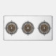 This sacred mandala shines with an aura of mystery and divinity. The golden highlights mirror the eternal flame of spiritual strength, while the black grounding gives stability and depth. The trishul-inspired centre symbolises protection, purity, and awakening. A meaningful design for anyone seeking art with soul — transforming daily objects into sacred reminders of inner strength.