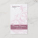 An antique illustration of a sconce ornament adds a soft flowing treatment to this salon/spa appointment business card. The business name and description stands out in the dusty rose panel near the bottom. Your or an employee's name prints at the top along with a title. The same ornament is cropped to add an intriguing touch to the reverse. Appointment information prints at the top with a website and contact information below. Available in alternate colours with matching products.
