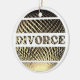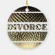 This product is a ornament for a successful end of a divorce process. It is a nice gift from family, friends and colleagues to celebrate the end of a marriage or decoration for divorce parties. The elegant design features a golden disco ball with the word divorce on a teal grey background.