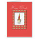 Diwali candle with a pattern surrounding the single candle. Red border surrounds the central image. Perfect card to send to celebrate the festival of lights, Diwali!
