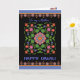 A pretty Diwali Greeting Card for a Mother, with a brightly colored Rangoli pattern and a border of Orange, Pink and Blue Flowers and a Rangoli motif, from a hand-painted paper collage by Judy Adamson. Part of the Posh & Painterly 'Rangoli' collection.