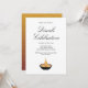 Diwali Holiday invitation, with a black and gold diya flame design and script lettering. With black customisable text, you can add your own information. The back has a gold glitter background, an elegant way to plan your Festival of Lights party or family gathering.