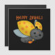 Yellow ladybug with rangolis for dots and a vermillion bindi, holding a deepa.