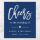 Modern Cheers Calligraphy Navy Blue White Wedding Favour Label.