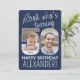 Look who's turning 50! Invite family and friends to an elegant 50th birthday celebration for him or her with custom 2 photo party invitations. Pictures and wording on this template are simple to personalise. The navy blue and white colours for the background, text and number outlines can all be customised by using the Zazzle design tool. (IMAGE PLACEMENT TIP: An easy way to position a photo exactly how you want is to crop it before uploading to the Zazzle website. If you need additional help, please message me :) The design features two pictures of your choice, modern script calligraphy, and stylish vintage art deco typography. The unique gender neutral design is also suitable for either a man or a woman. Happy Fiftieth Birthday!