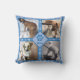 Make your own dog photo collage throw pillow by using the provided template . (Use square pictures for best results .) Make sure to add the dog'd name ,too . The cool thing about this particular pillow is that it is reversible . On one side it has your pet photographs and on the other it has a simple paw print pattern . Don't forget to choose the type of fabric you want :)
