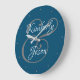DIY His & Her Script Names, White & Grey on Black Large Clock