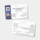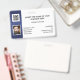 A brushed textured dark blue horizontal badge forms a border edge to the left side of this card and has a template for your logo, company barcode and vertically orientated employee photo on it. The front right and back of the card have templates for your company name; employee details and business address. Personalise the template to suit your requirements and change the background and font colour to any of your personal choice.