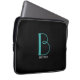 DIY Large Monogram & Name, Teal/White Text, Black Laptop Sleeve