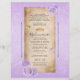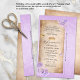 Create your own beautiful DIY scroll invitations that can be cut and rolled yourself for a special sweet 15 birthday party or other special event. The aged tan vintage parchment paper design created with unique art by Raphaela Wilson depicts light purple watercolor roses, faux gold glitter butterflies, a princess tiara / queen crown, and fancy border with an ornate dresses / gown style. The flexible, easy card template comes w/ 5" width cut guidelines that are adjustable for as large or small of a scroll needed. If the paper is kept at an 8.5" by 11" size, the 5 inch width trim shown can produce parchment paper invitation cards that fit beautifully on a 6" dowel. For rolling scrolls, the matte paper selection works well - as it's a thinner stock compared to the other paper choices. These cool watercolor quinceanera invitations can also be reworded to suit lilac rose weddings, Cinderella princess baby showers, a royal lavender sweet 16 birthday party, or any celebration with a once upon a time fairy tale theme. Customising this cool design further will reveal other creative options. Feel free to change the black script calligraphy ("My Quinceanera") and modern fonts to a typography style that best suits you. You can also adjust all individual art elements (ie. roses, filigree border, parchment paper) and more. Even include a glamourous mis quince anos photo if you'd like. With a luxurious parchment paper texture on both sides, these DIY custom scroll invitations look beautiful when rolled up. Enjoy! Category: rose lavender quinceanera invitations; DIY quinceanera scroll invitations; and handmade scroll wedding invitations. Lilac quinceañera theme party colours: light purple pastel, lavender, lilac, light brown, tan, beige, black, and champagne yellow gold.
