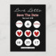 Fun interactive wedding Save The Date post card done like a lottery scratch off card. Done in black red and white, with graphic text at the top and red hearts, you personalise the wedding information you want your guests to scratch off then add your own round scratch off stickers. (not sold by Zazzle) The back of the post card has custom text fields. What a fun way to announce your wedding plans a head of time.