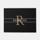 Personalise this trendy black doormat with Light Brown Monogram and White Name. A simple, yet elegant design with 2 grey stripes.