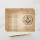 Create your own custom masonic program or folded roll call stationery on an easy to use rustic parchment DIY template. The unique freemason design features original art by Raphaela Wilson which includes the vintage aged paper, square and compass symbol, master mason jewels and trowel. The old scroll paper texture and masonic symbols have a rustic, antique burned edges look, and all text elements can be personalised with any custom wording - even add lodge officer photos / pictures if you wish, or change the elegant typography to fonts that best suit your style. These simple masonic programs can be folded and used for a roll call ceremony, the annual installation of officers, invitations, brochures, stained letterhead, and even as everyday freemason stationery for letters. Category: personalised masonic folded roll call stationery; custom freemason paper sheet; and masonic installation program template ideas. Masonic themed party colours: dark brown, light tan, beige, burnt orange, yellow ivory white, and black.