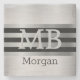 DIY Monogram/Name Bk/Silver Stripes Brushed Silver Stone Coaster