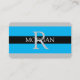 DIY Monogram Name Info Black Grey Sky Blue Stripes Business Card