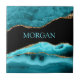 DIY Name, Black, Gold & Teal Agate Ceramic Tile