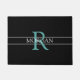 Personalise this trendy black doormat with Teal Monogram and White Name. A simple, yet elegant design with 2 grey stripes.
