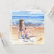 ** This soothing soft beautiful watercolor Beach design is Nautical Scene of a Sea Shore Beach painting of a Woman / Young Girl enjoying the view of the gentle tide come in as she is sun bathing on the Tropical Beach shore.