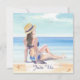 ** This soothing soft beautiful watercolor Beach design is Nautical Scene of a Sea Shore Beach painting of a Woman / Young Girl enjoying the view of the gentle tide come in as she is sun bathing on the Tropical Beach shore.