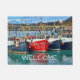 Personalise "Welcome" message or Name in White Text on photo of Fishing Boats in harbour. This simple Design makes a great gift.