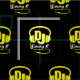 DJ black yellow and white repeat headphones and name fabric. Personalise with your own name, currently reads Jimmy R. Ideal for DJ's and music fans. Original art and design by Sarah Trett.