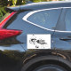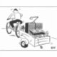 Funny DJ sticker. For the Mobile DJ. Disc Jockey on a cycle with a trailer carrying his record players and turntables. Mobile Disco cartoon.