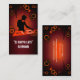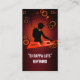 This DJ business card features a rich red and burgundy colour background with red beam spikes, dj silhouette is mixing up sounds on a turn table.